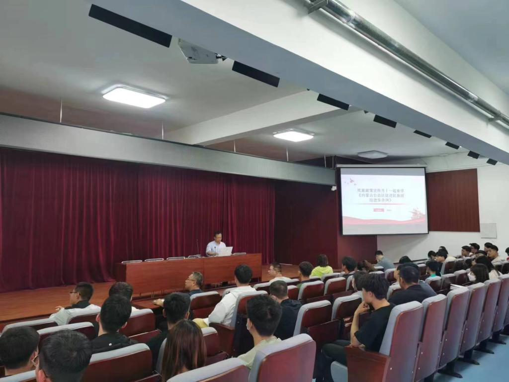 2023年5月25日下午4:30在三号教学楼五楼阶梯教室召开,道路桥梁工程系党总支展开民族政策宣传月—《内蒙古自治区促进民族团结进步条例》的学习,会议由党总支组织委员韩青松领学。