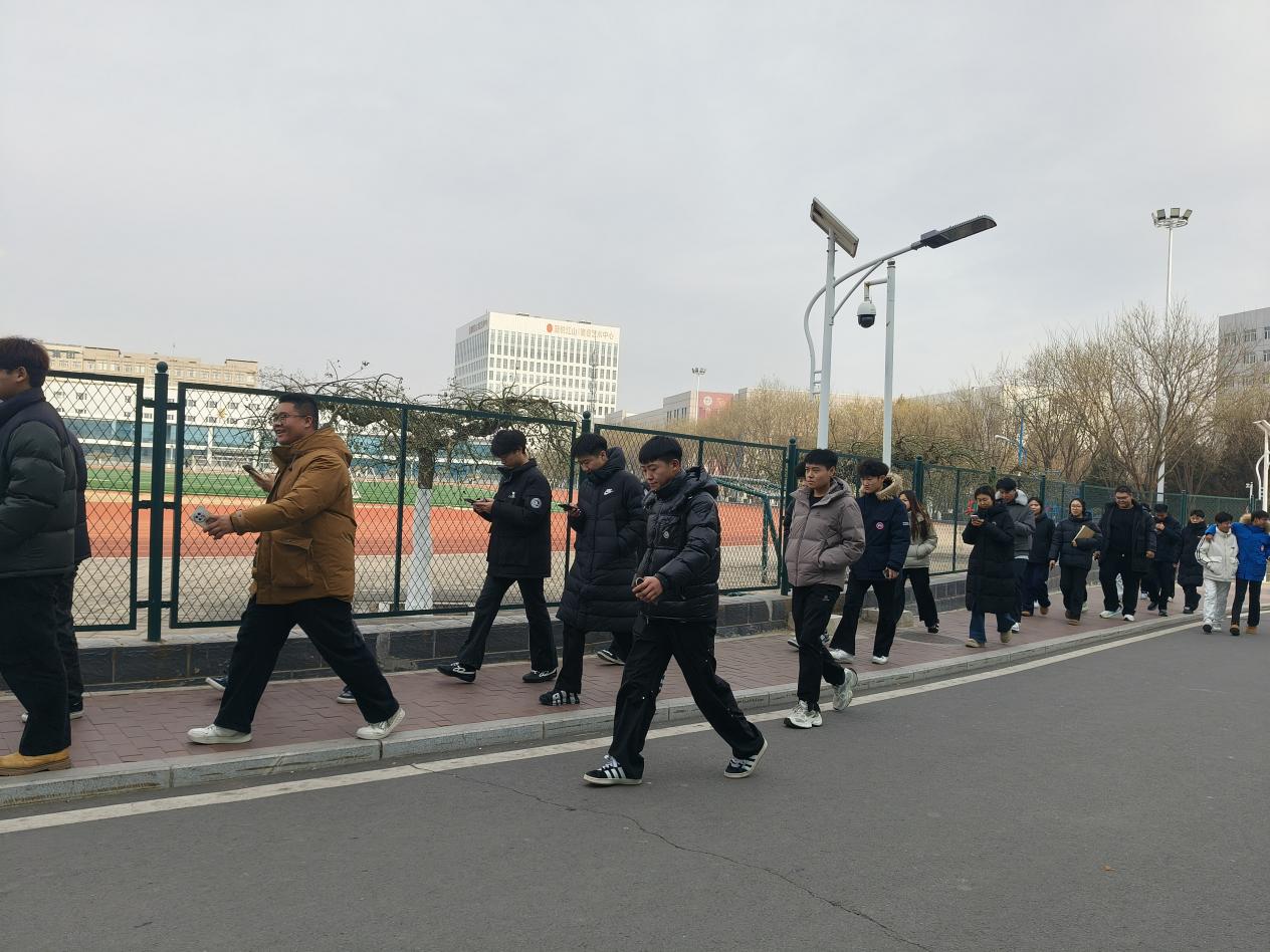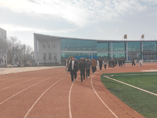 理论培训结束后,全体成员移步运动场开展实践锻炼。尽管寒风凛冽,但同学们热情不减。在“健步团,第一”的整齐口号中,团队成员积极投入健步运动,最终累计达成总步数10万步以上的优异成绩。