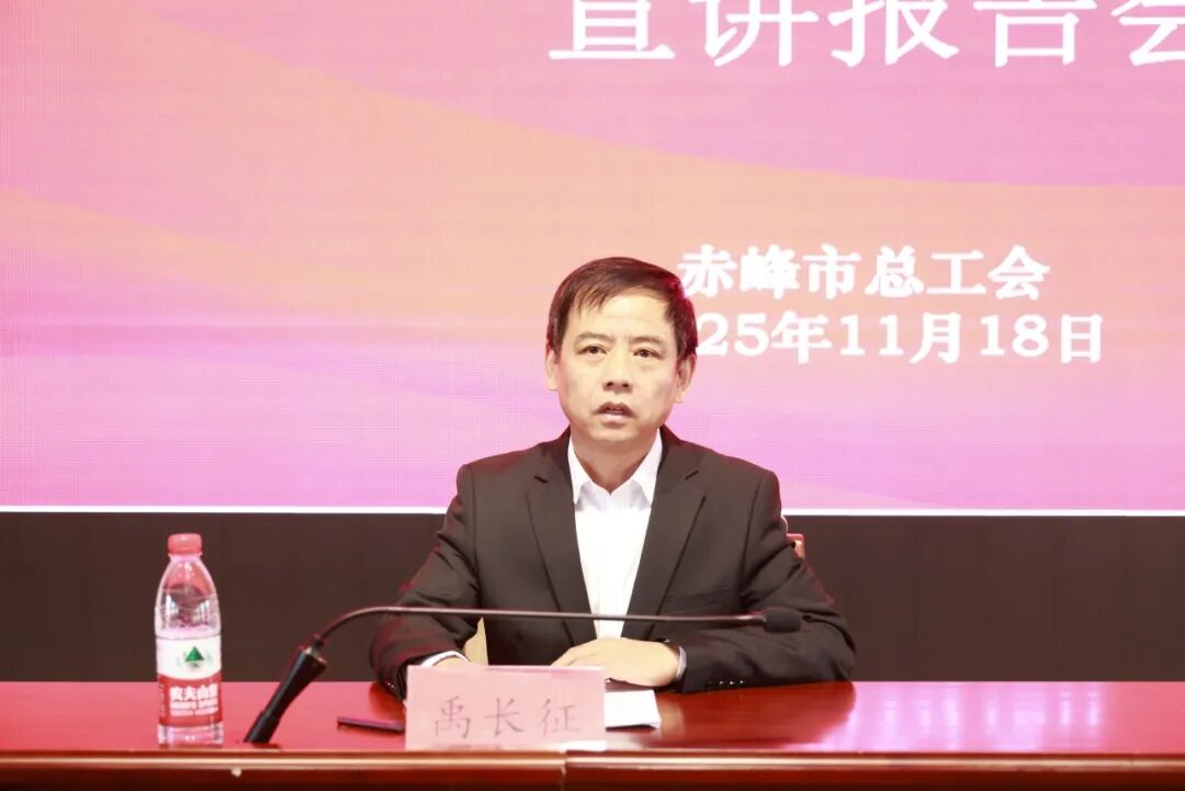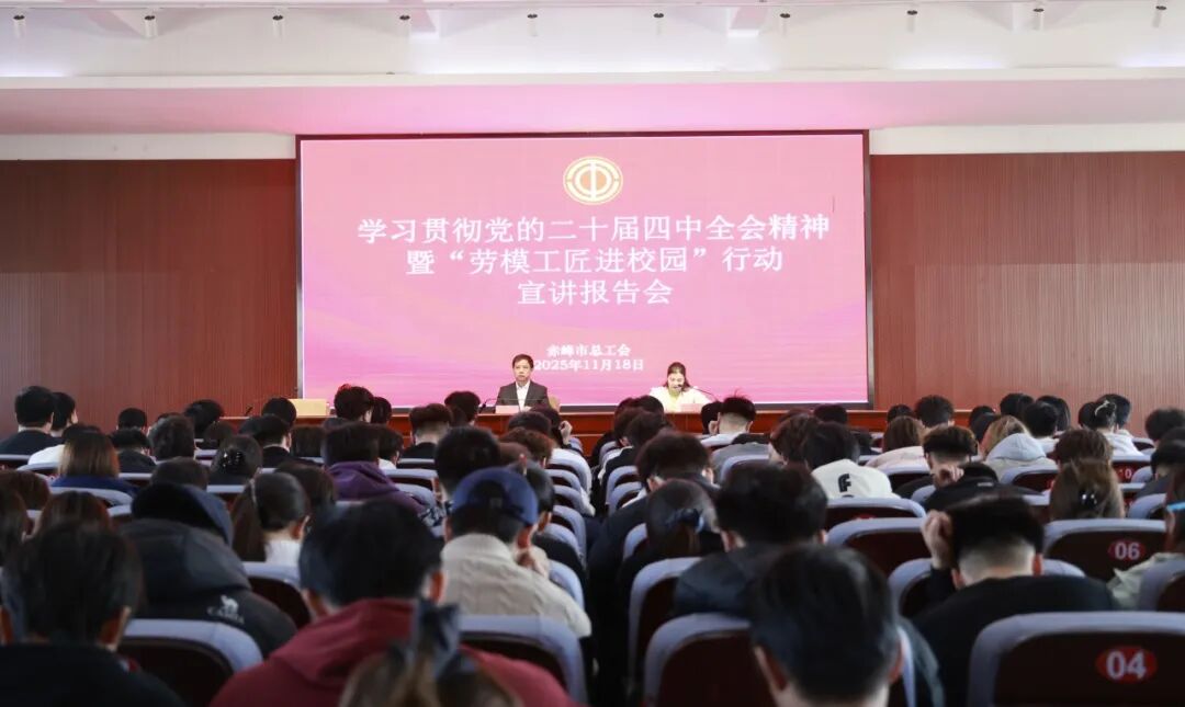 11月18日,由赤峰市总工会主办、内蒙古交通职业技术学院工会承办的学习贯彻党的二十届四中全会精神暨“劳模工匠进校园”行动宣讲报告会在汇通楼举行。