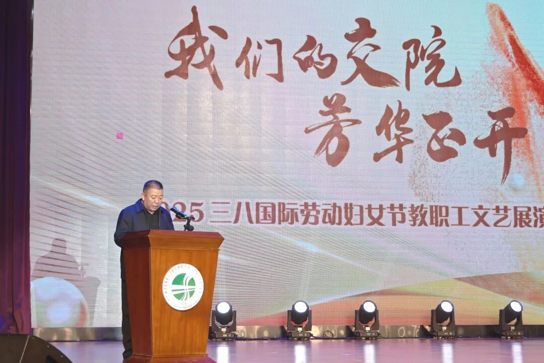 党委副书记吕东辉代表学院党委致辞,向全体女教职工致以节日的问候和祝福,肯定了她们在学院各项事业发展中作出的重要贡献,勉励大家始终与党同心、跟党奋进,在践行新思想中筑牢巾帼信仰之基,在奋进新征程中彰显巾帼担当作为,在引领新风尚中展现巾帼别样风采,在提升新境界中创造巾帼出彩人生。