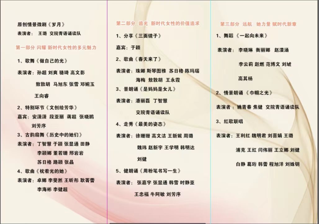 为庆祝第115个“三八”国际劳动妇女节,3月7日晚,“我们的交院芳华正开”教职工文艺展演在天佑文化艺术中心温馨开演。