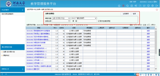 3.学生选课前,应认真查看自己已修读课程,已获得学分的课程,不得再次选课,否则系统不予认定成绩。