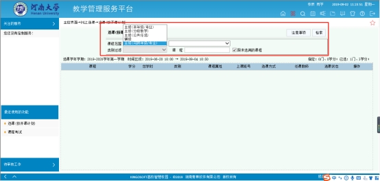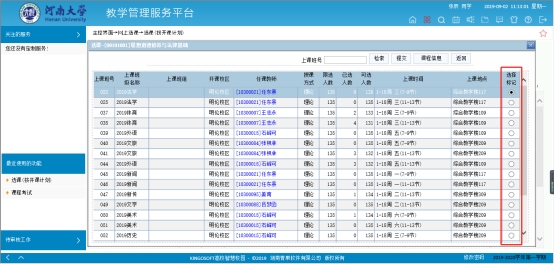 2.选择课程、选定任课教师与上课班级。
