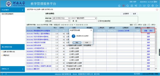 如果需要退选已经选过的课程,点击退选按钮,点击确定即可,如图8所示: