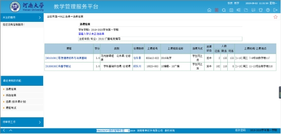 4.查看并确认正选结果,截图留存,完成选课。