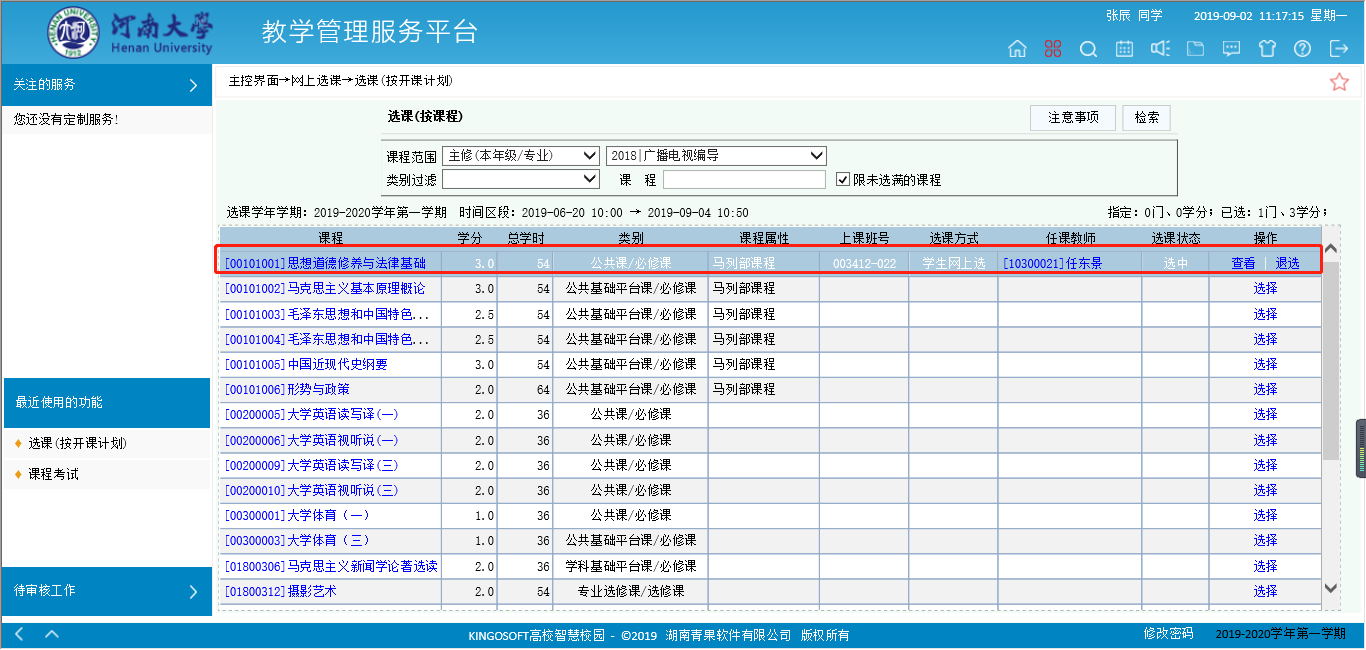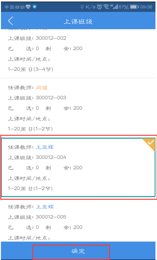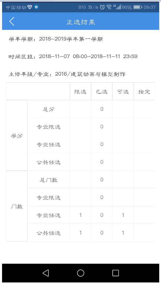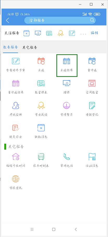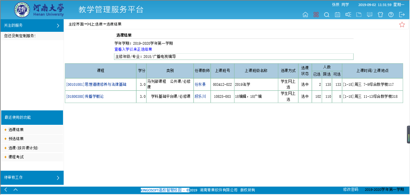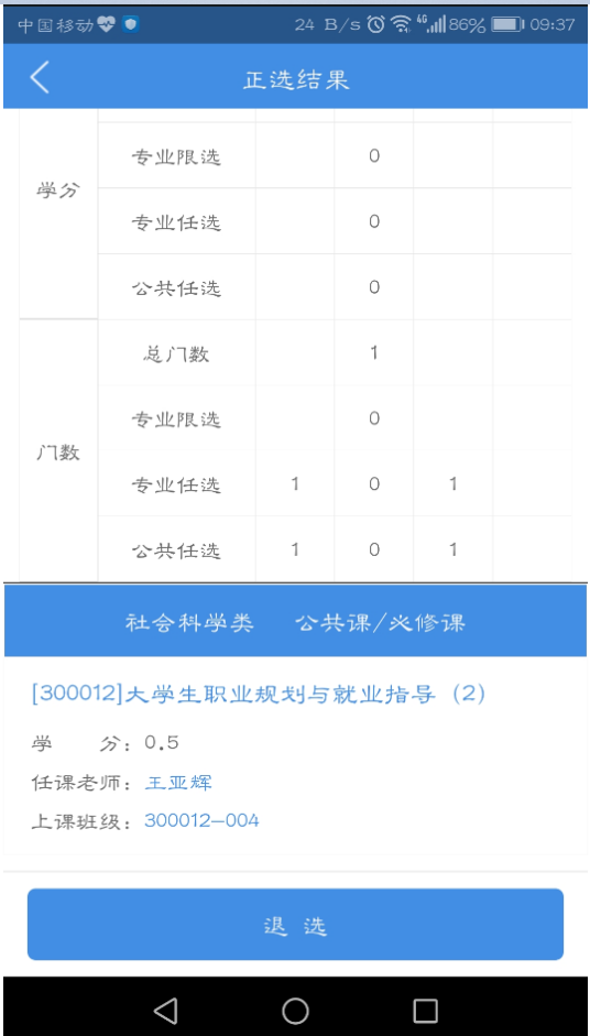6.选课完毕后,在正选结果里查询核对所选课程。