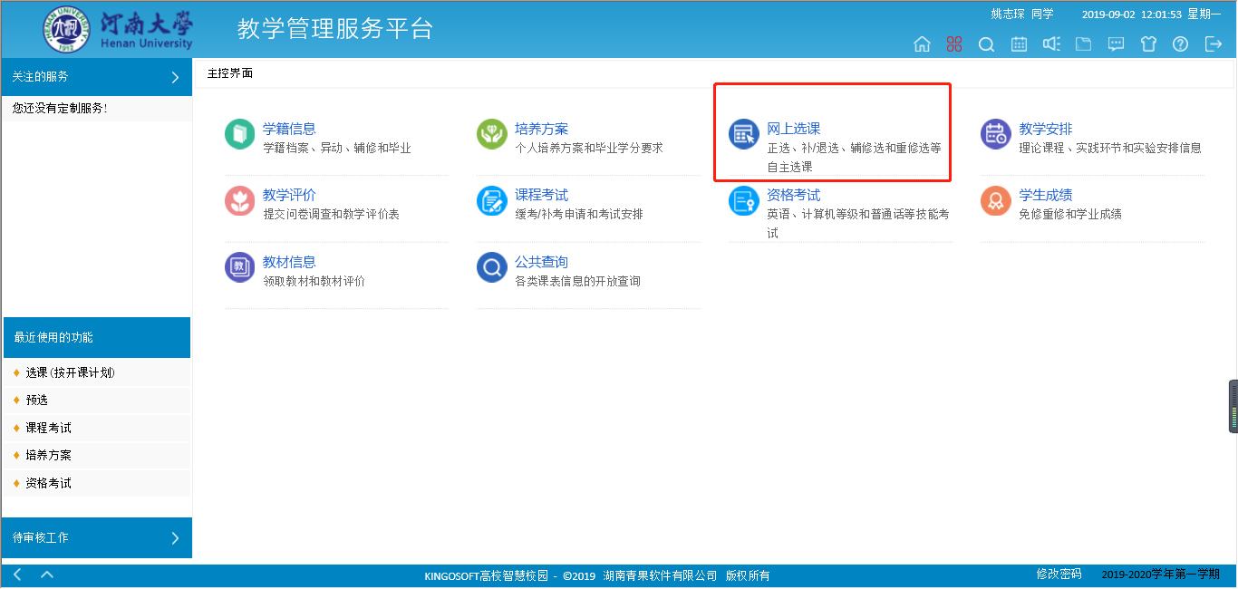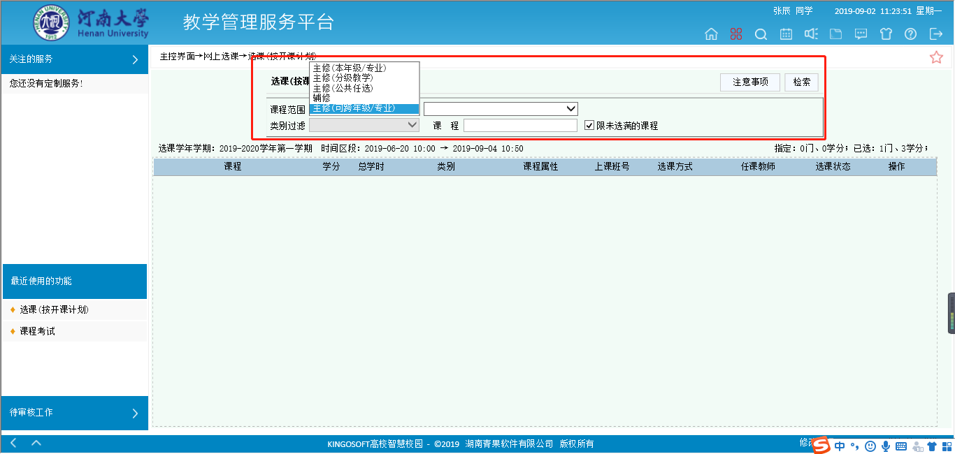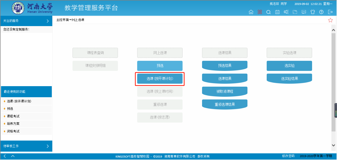 登录系统后,点击网上选课,点击选课(按开课计划),如图2,图3所示: