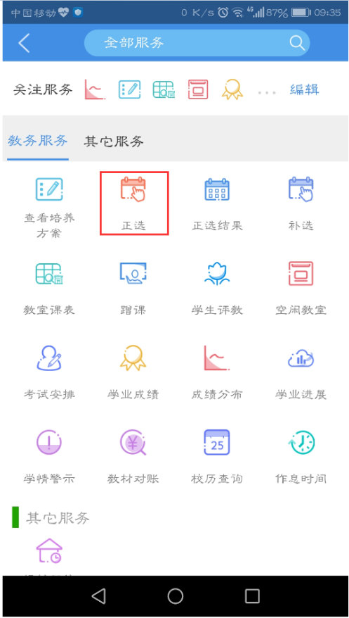 (三)在正选时间内可以改选项目。改选是在已选课程区域点击“取消”该项目后,再选择其它项目。