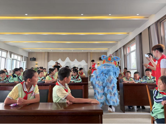 实践队巧妙地将非物质文化遗产的传承与普通话推广相结合。精彩的舞狮表演引得孩子们欢呼雀跃,在互动体验中,队员们用普通话讲解动作要领和文化内涵;神奇的川剧变脸艺术让孩子们目不转睛,艺术家与队员们的现场教学,让孩子们在感受传统艺术魅力的同时,丰富了普通话词汇。这些活动不仅播下了文化传承的种子,更在寓教于乐中提升了孩子们的语言表达能力。
