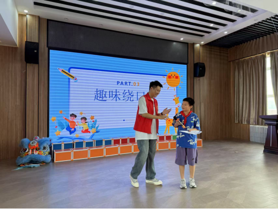 在柳条沟小学,实践队策划组织了生动有趣的“金牌主播”普通话推广活动。通过绕口令挑战、故事讲述比赛等形式,激发孩子们学习、使用普通话的兴趣。当孩子们用略显稚嫩却无比认真的普通话勇敢表达时,当方伟豪同学带领全体孩子齐声高唱《孤勇者》,激昂的歌声响彻校园时,实践队员们看到了语言的力量如何为孩子们打开通往更广阔世界的大门。活动评选出的“金牌主播”们手捧证书,脸上洋溢的笑容,是对队员们辛勤付出的最好回报。