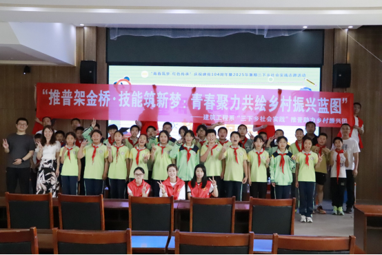 为庆祝中国共产党成立104周年,深入学习贯彻党的二十大精神,积极响应国家关于推广普及国家通用语言文字、服务乡村振兴的战略号召,今年七月,建筑工程系实践队奔赴柳条沟村,开展了为期七天的社会实践活动。实践队立足专业特色,聚焦乡村实际需求,精心策划并实施了以“推普助力乡村振兴”为核心,融合教育关爱、文化传承、科技支农、劳动体验等多维度的实践活动。