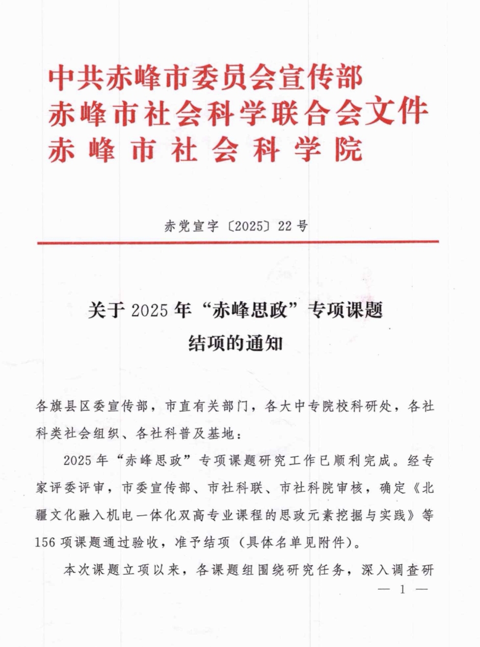 关于转发2025年赤峰市社会科学科研课题结项评审结果的通知
