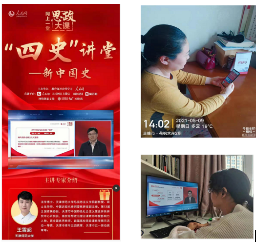 思政教学部于2021年5月9日-5月22日期间,通过集中或者自行观看的形式,组织我院全体思政课教师在线观看“同上‘四史’思政大课”。