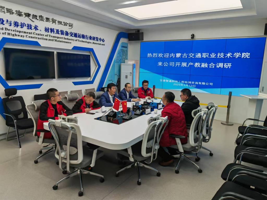 在甘肃智通科技工程检测咨询有限公司,调研团队与企业技术负责人围绕“道桥工程检测技术升级”、“实训项目共建”等议题展开座谈,企业方介绍了当前工程检测领域的智能化设备应用、行业标准更新趋势,双方就企业真实检测项目转化为教学实训案例达成初步合作意向,并实地参观了企业的检测实验室,了解检测核心技术的一线应用场景。
