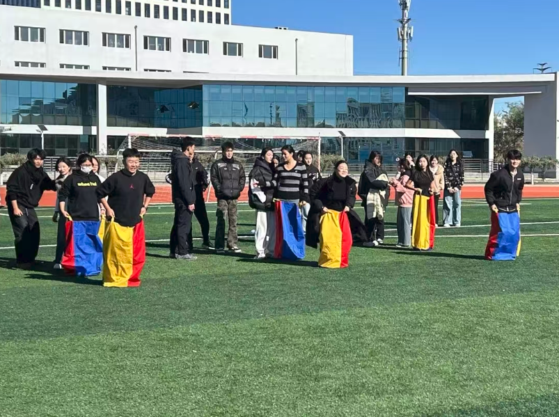 袋鼠跳将现场气氛推向高潮。队员们套上色彩鲜艳的布袋,化身为一只只活泼的“小袋鼠”,在赛道上奋力跳跃。有的步伐稳健,有的蹦跳如飞,接力区内的传递更是紧张有序,展现了同学们的活力与激情。