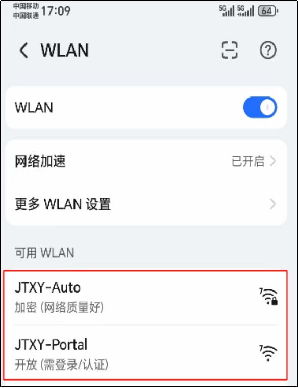 2、内蒙古交通职业技术学院校园网名称(JTXY-Portal, JTXY-Auto)。