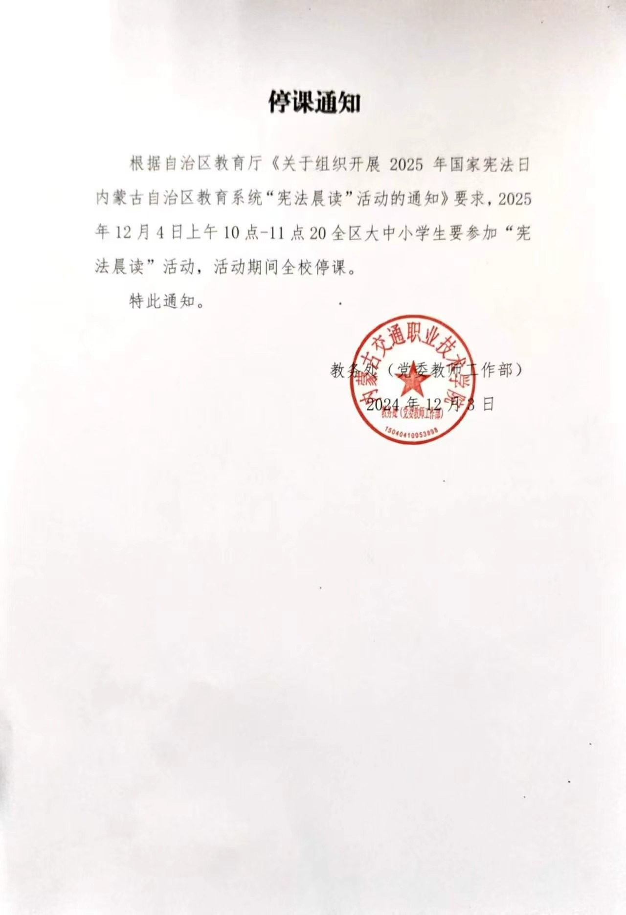 12月4日停课通知