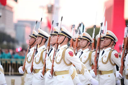 2018 年 1 月 1 日,天安门国旗护卫队由武警转隶到人民解放军仪仗大队,我很荣幸见证了这一历史时刻。由于任务的特殊需要,国旗护卫队人员短缺,仪仗大队前后召回部分老兵暂时补充,另一部分在我们这批新兵中择优选拔。明知国旗护卫队训练会更苦更累,但我还是积极报了名,经过层层选拔后,我转到了国旗护卫队,开始了升降国旗的军旅生活。每天太阳升起国旗升起,太阳落下国旗降下,365 天每天如此。夏天升国旗时,我们必须在凌晨三点就起床进行任务准备,有时候困得走路都想闭着眼睛走,但每次走出券门看到在天安门广场和金水桥两侧观旗的群众时——很多人都是直接睡在地下通道或彻夜不眠地等待,只为能在第二天一大早抢到个好点儿的观旗位置,顿感困意全无,我们要把最精彩的最震撼的姿态展现出来,足音铿锵、口号嘹亮、气势如虹,激荡着大国的坚定自信、飞扬着民族的壮志豪情、彰显着人民军队捍卫国家尊严的坚强决心。