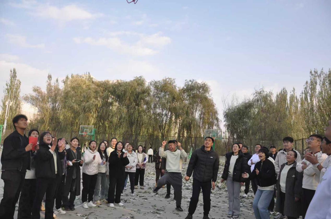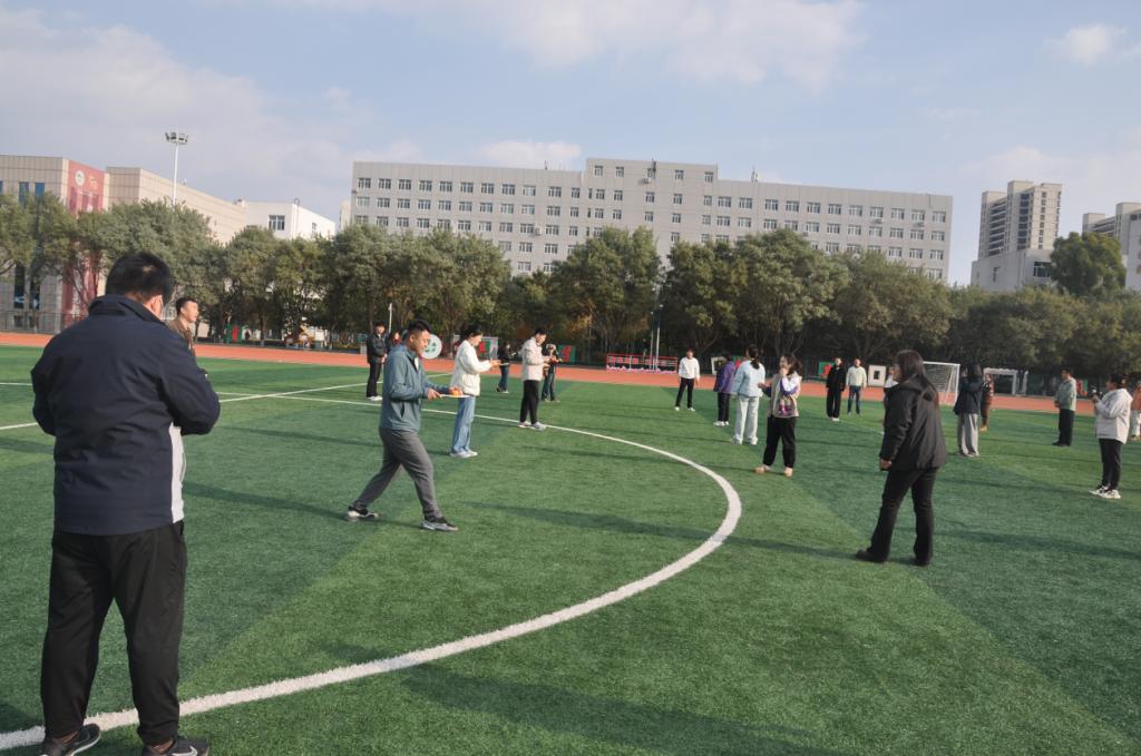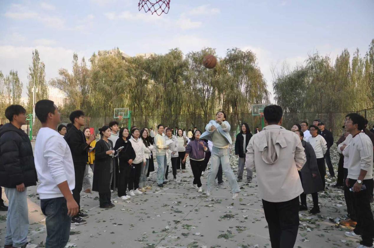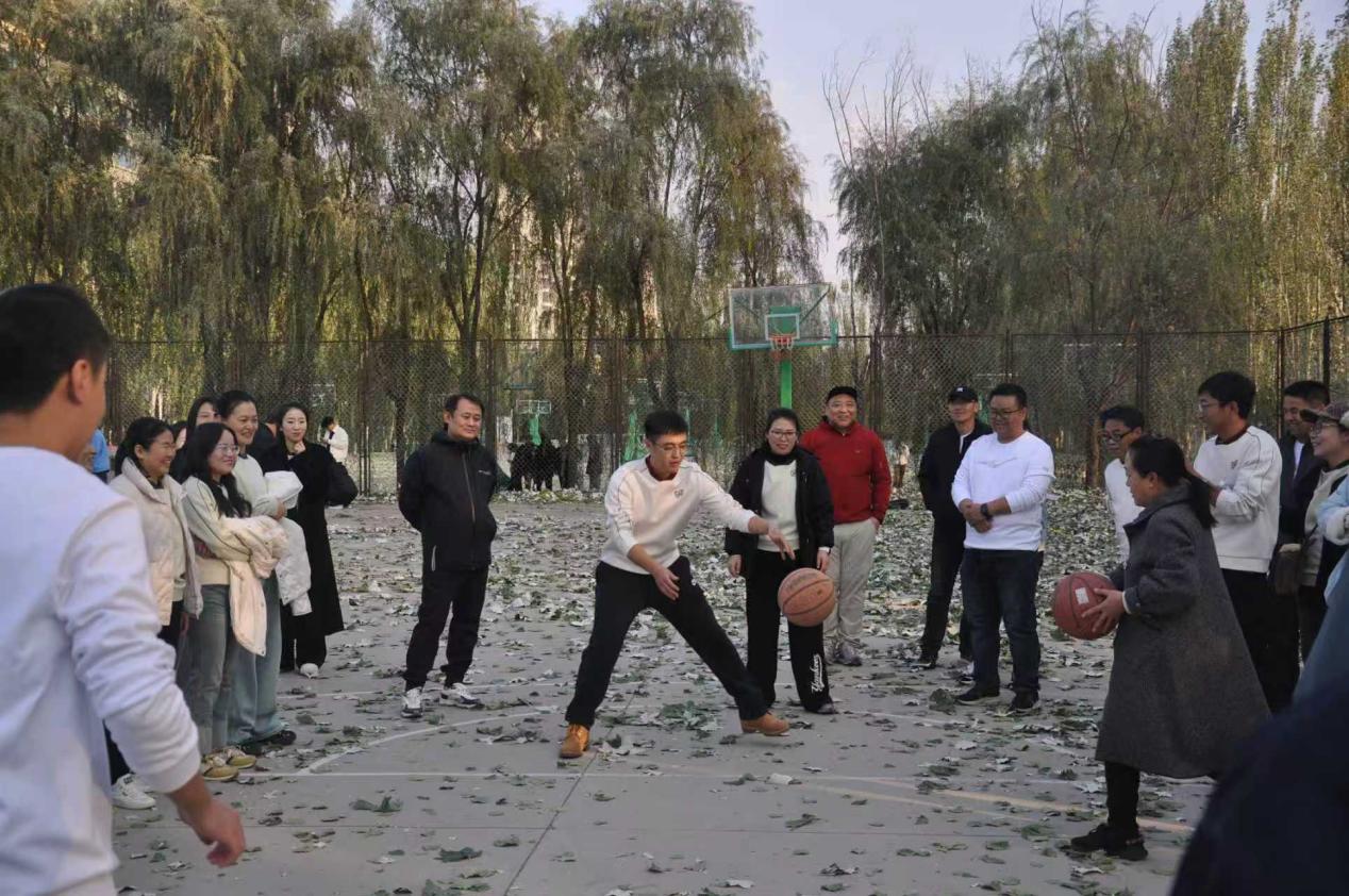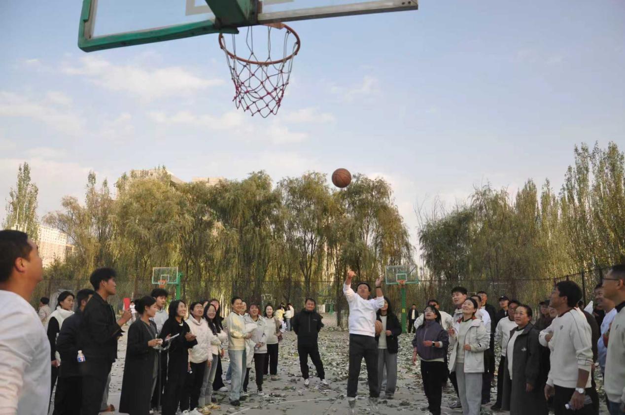 各组队员在篮球场上展开精准较量。各小队成员轮流在固定位置投篮,限时2分钟。这不仅是对个人技术的考验,更是对团队策略与心态的挑战。每一次精准命中都引来阵阵喝彩,展现了教师们讲台之外的另一番风采。