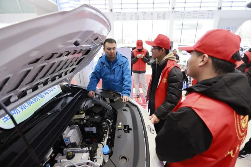 在新能源汽车展示区,同学们深入了解了新能源汽车的电池、电机与电控系统,并和传统燃油汽车进行了对比分析。通过专业讲解、实地观摩和专题研讨,大家对新能源汽车的技术优势和发展趋势有了更加清晰的认知,也为锚定未来职业方向提供了重要的参考。