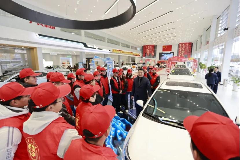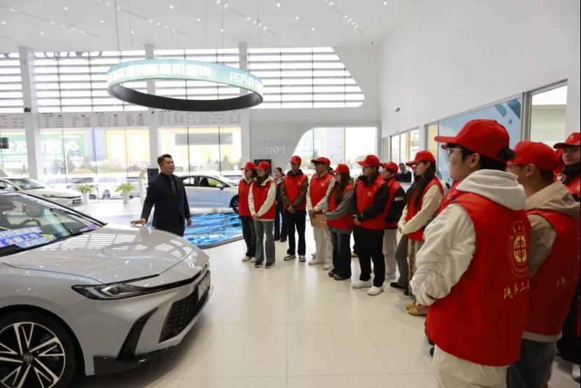 同学们首先走进展厅,深入了解各款车型的设计亮点、市场定位及售价。大家在聆听讲解的同时,还亲身感受了智能座舱的驾乘体验。随后,同学们现场模拟了真实汽车销售场景,对销售顾问的工作流程进行了实践,也对销售顾问岗位的职责与能力要求有了更加直观的认识。