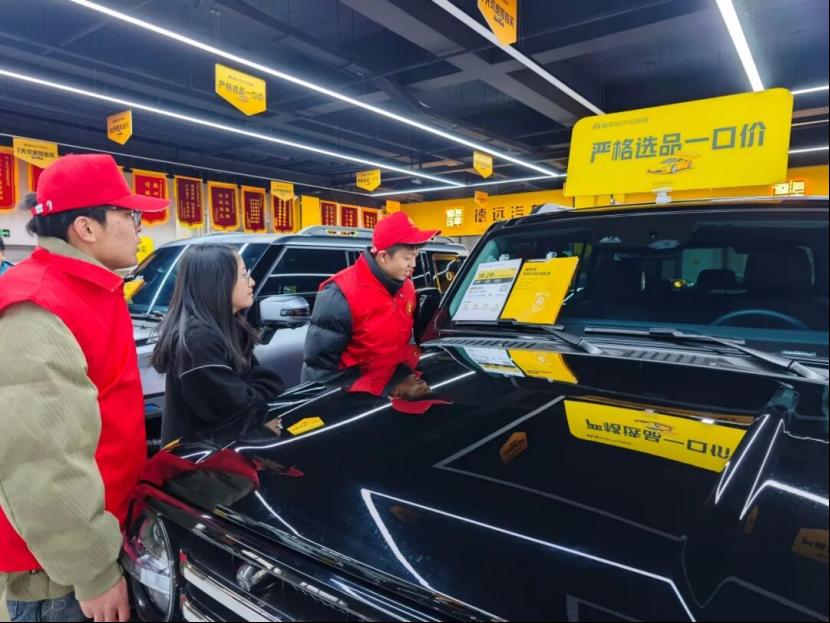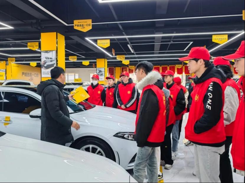 963制式汽车卖场——“9万公里以内、6年车龄以内、3件补漆以内”的筛选原则,搭配每辆车详尽的车况公示,让同学们理解了“品质营销”的严谨和规范,同时从实践的角度重温了二手车品质把控的标准。同学们还体验了入驻市场的部分优秀二手车企的运营模式和专业服务,直观感受了二手车市场从“粗放交易”到“正规化、专业化、数字化”的转型轨迹,为同学们搭建起对汽车营销岗位的职业认知框架。