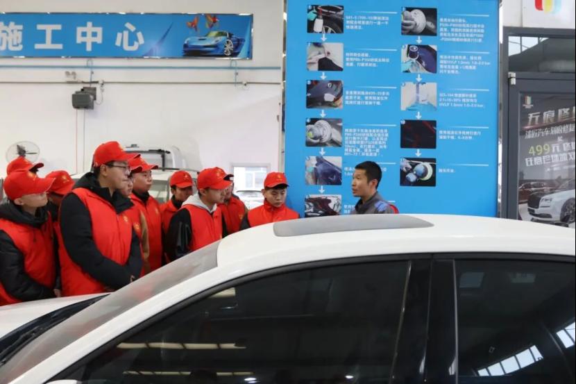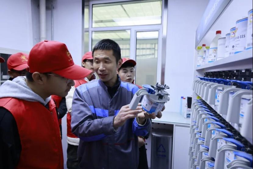 在喷漆车间,同学们见证了汽车“旧貌焕新颜”的神奇转变。技术人员介绍了喷漆工艺的流程,包括底材处理、底漆喷涂、面漆喷涂以及清漆喷涂,每一个步骤都对最终的车漆质量起着关键作用。同时,技术人员还向同学们宣传了环保理念,现代喷漆车间采用先进的废气处理设备,让同学们深刻认识到汽车维修行业的环保责任,拓宽了“汽车+绿色发展”的专业视野。