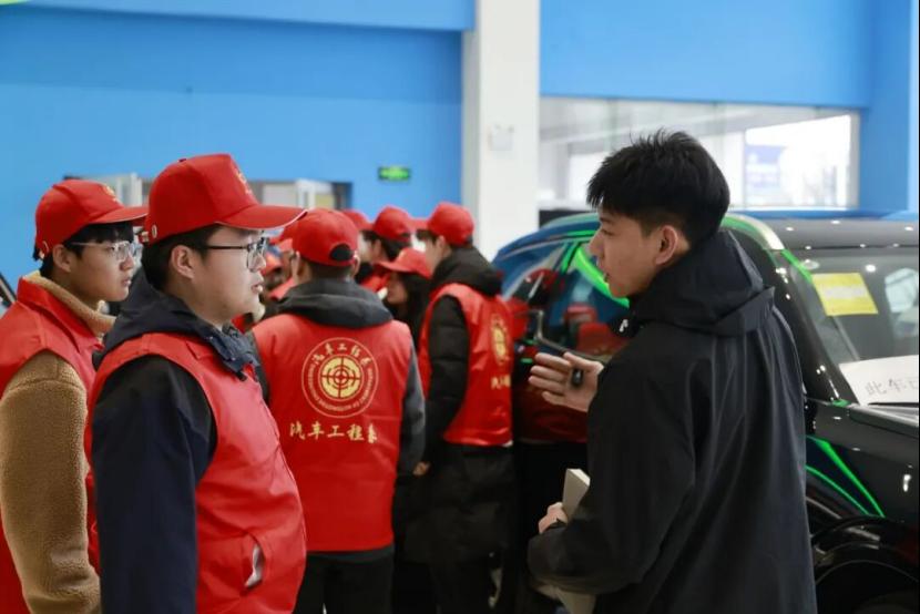 同学们一边认真聆听关于车辆性能、核心配置的专业解读,一边置身车内空间体验各项功能,在触手可及的汽车科技中深化对车辆技术的认知。